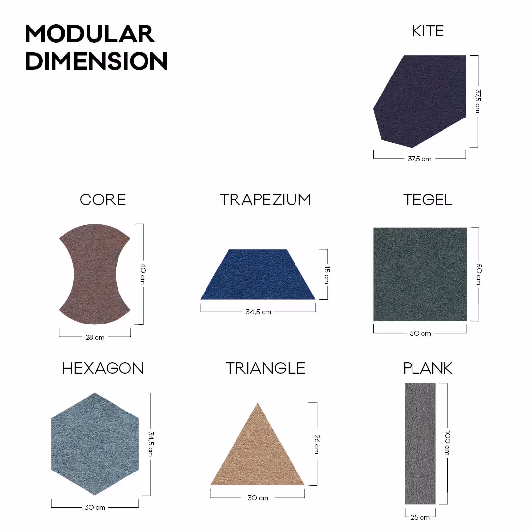 This felt tile is a welcome guest in busy areas, because this whopper is easy to use for intensive use. So here to stay. He prefers to keep his own footprint limited, because this tile is produced in a very sustainable way. You can go in any direction with this directionless felt. Because with its 7 shapes, this tile fits seamlessly with all styles; from a modest, sleek floor design to a playful mix of shapes and colors. Confessing color is also child's play, thanks to the color palette of up to 30 colors. Also available on the roll.