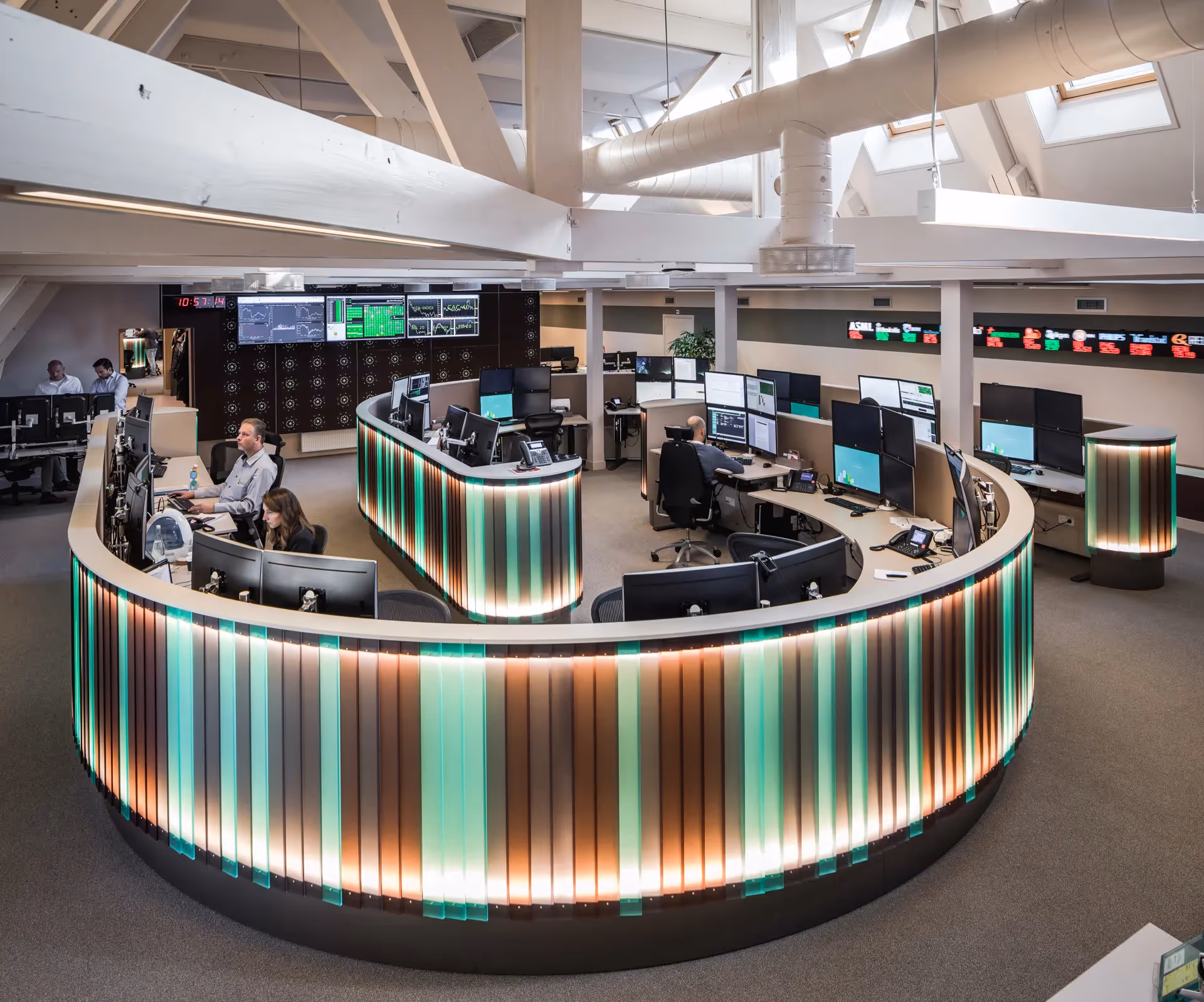 Euronext Market Services is located in the monumental building on the Beursplein in Amsterdam. In the attic of the building, the architect has managed to create a pleasant workplace that catches the eye. Here, the colors and patterns are derived from the original architectural style. The rectangular core is covered with our felt from which we cut crystal motifs, referring to the dome decorations in the hall.