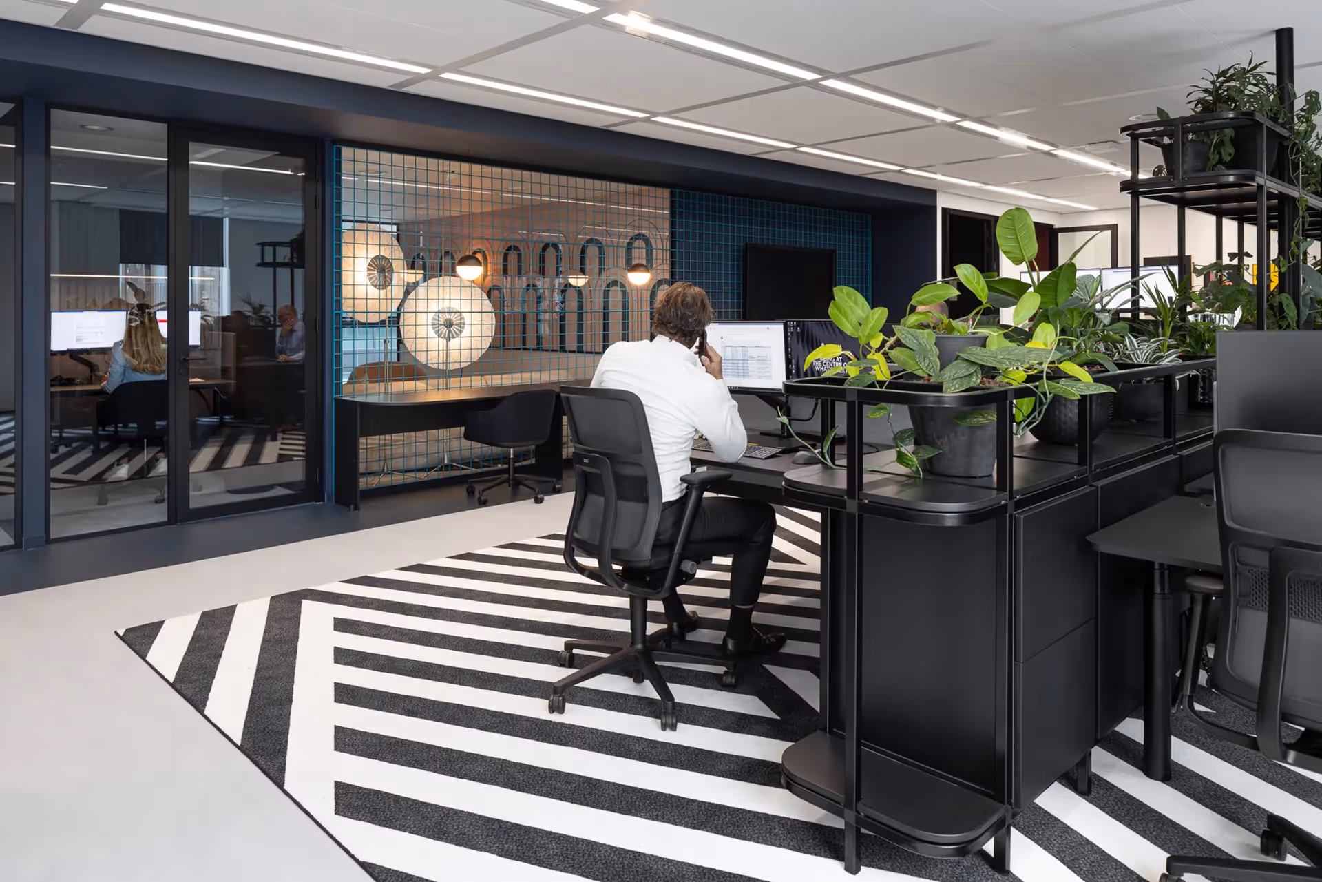 With playful shapes, materials and patterns, it looks like the Memphis movement. Very nice that a selection of our rug collection fits perfectly in this, combined with our Modular Dimension and Tailored carpet.