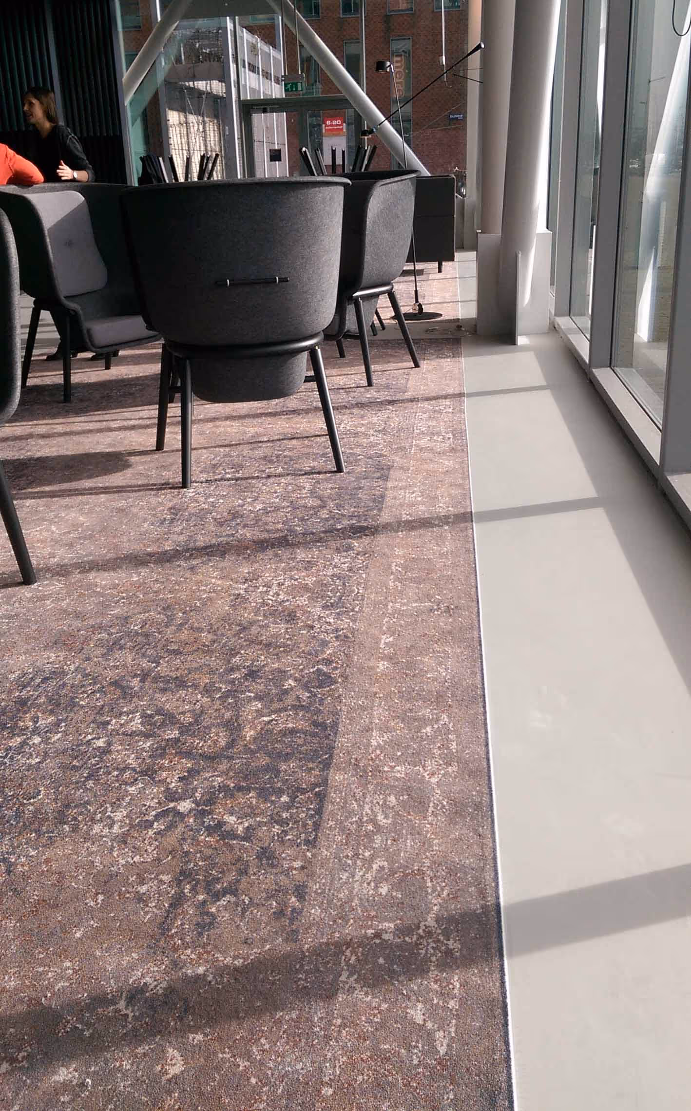 In collaboration with VOID architects, we have adapted the Concrete Vintage rugs in color and size for the redesign of the entrance lounge of Huys Europa in Amsterdam, the former head office of Ahold.