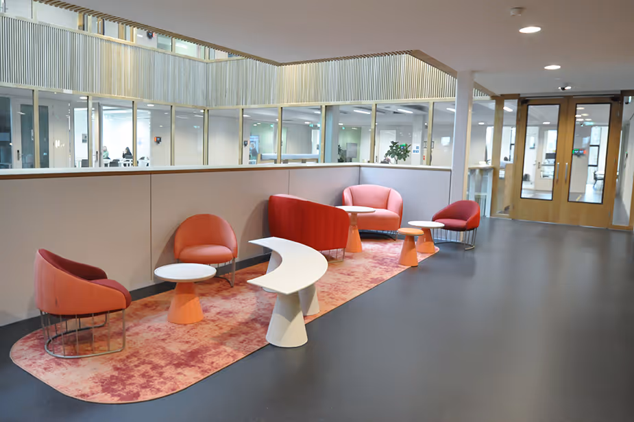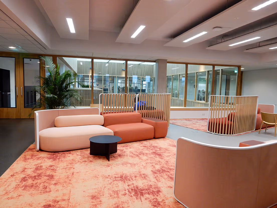 For Nova College in Haarlem, we made a beautiful collection of Raw carpets in various colours, shapes and sizes. In addition to our standard blue Raw - Flea, Firm Architects created custom colours that perfectly complement the furniture.